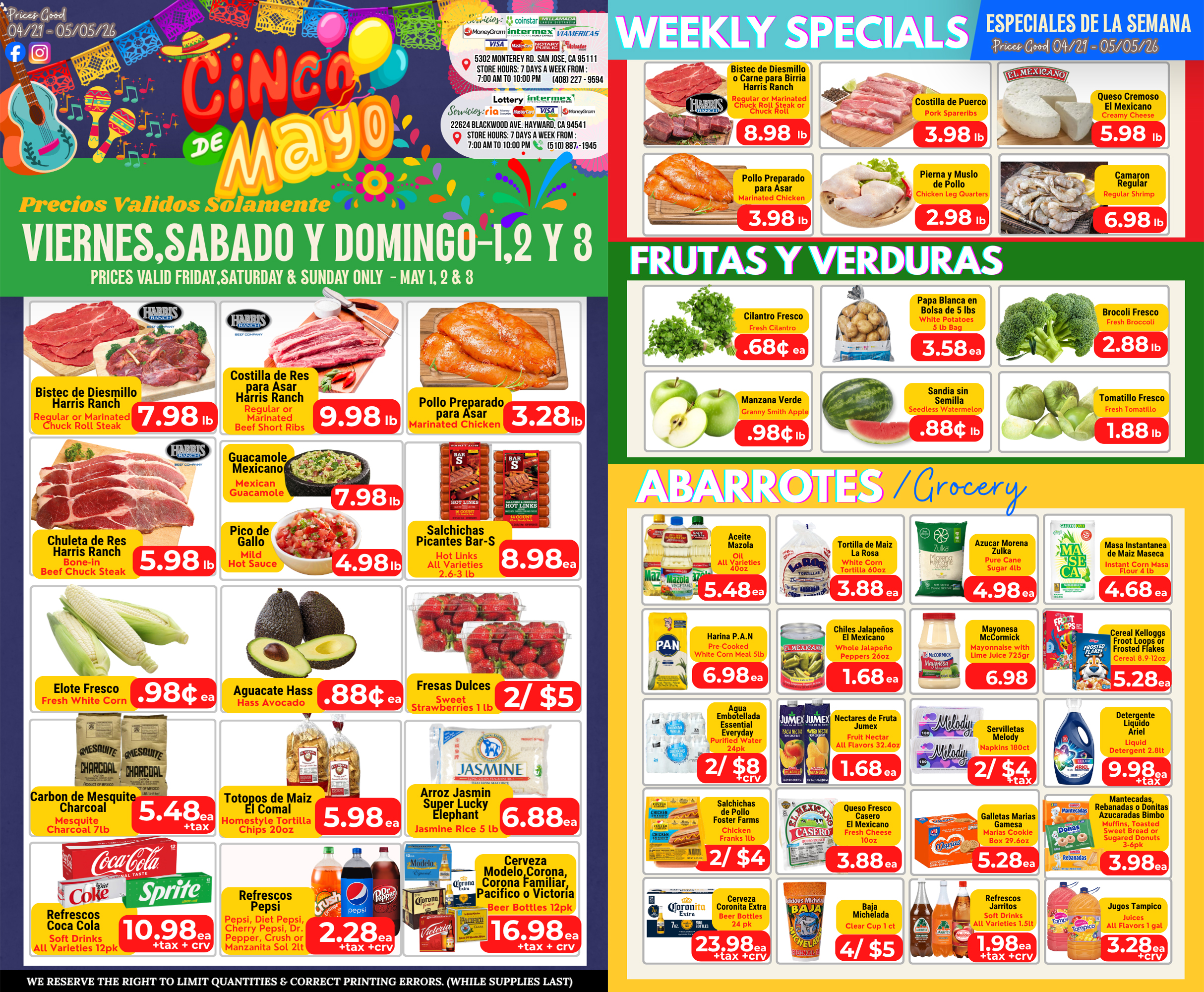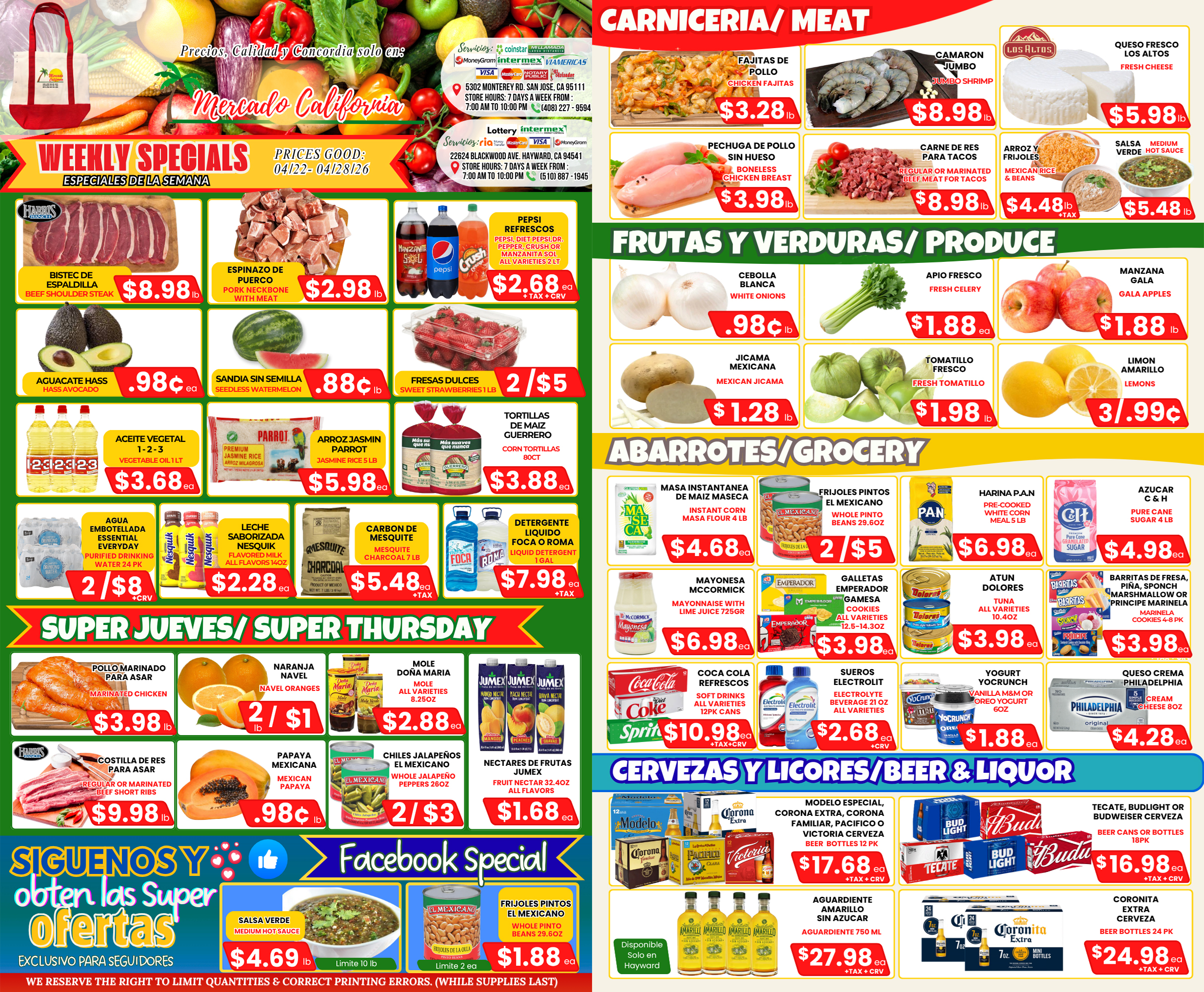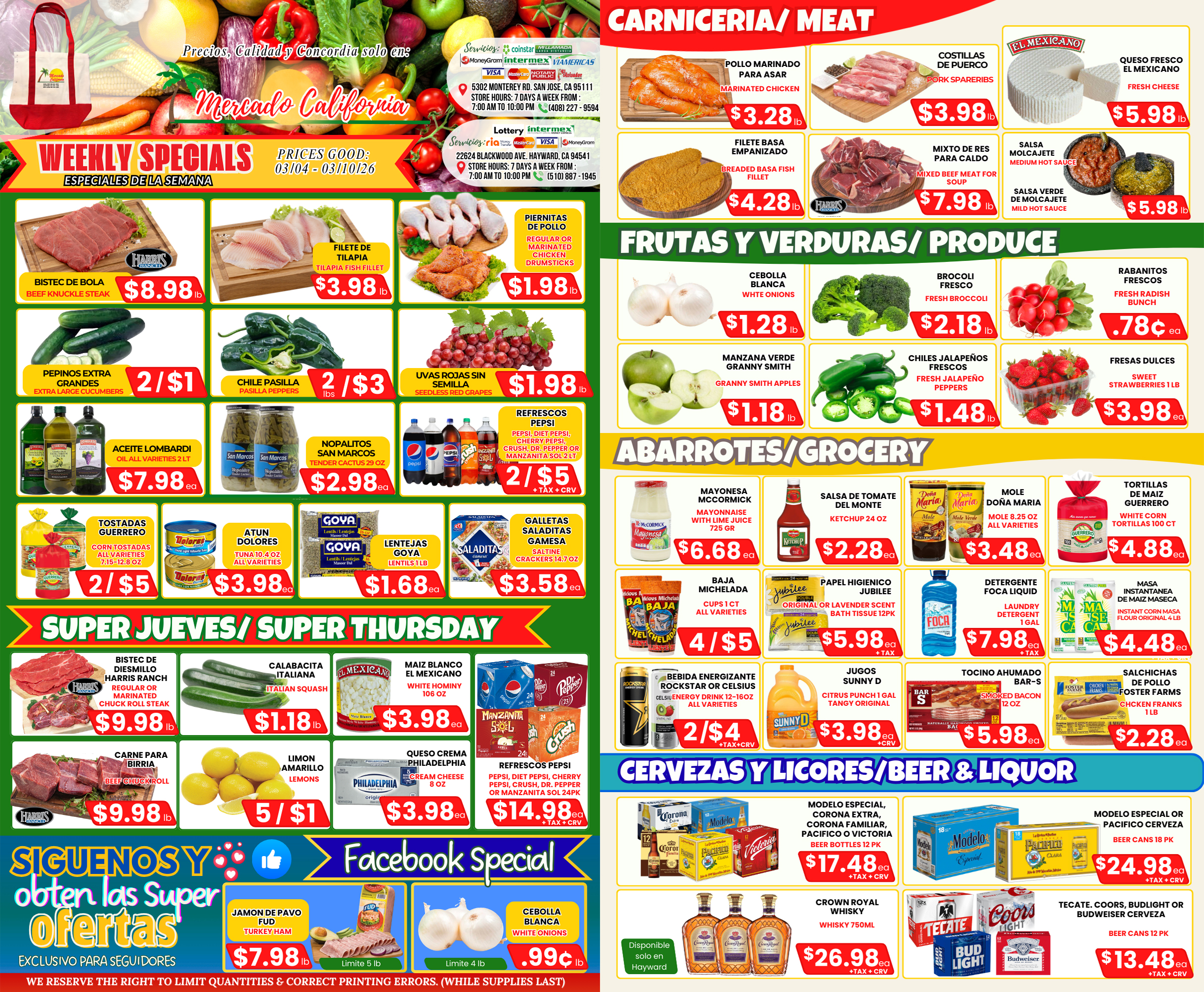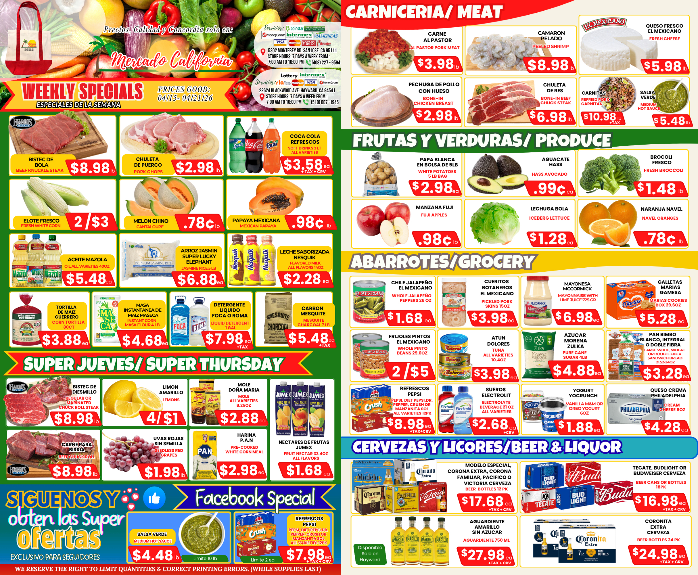Whether you visit us to buy your weekly groceries or to get a bit to eat at our “Cocina”, we strive to provide you with the best experience possible! We count on a very knowledgable staff that can help you with any questions you may have during your visit. We are also proud of the quality in produce, bread and meats that we offer at our locations. You can be sure that everything will always be fresh and at the best price possible!